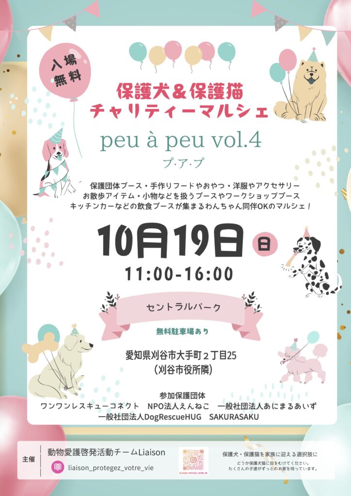 ・19日:保護犬&保護猫 チャリティーマルシェ@セントラルパーク