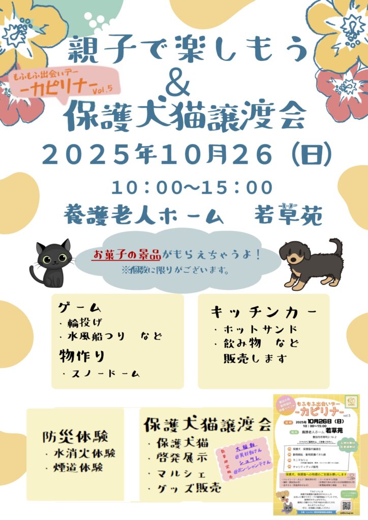 ・26日:保護犬保護猫譲渡会&動物福祉イベント@養護老人ホーム若草苑